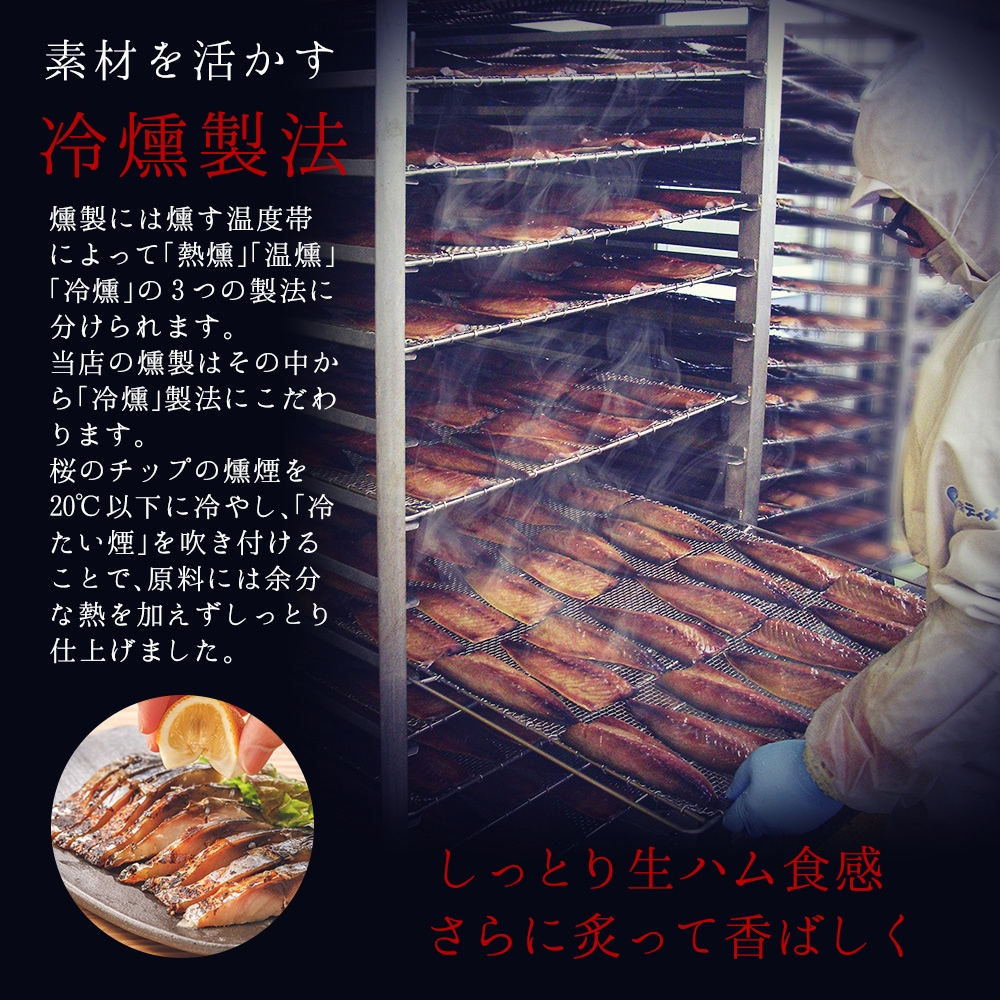 しっとり生ハム食感の燻製 鯖の冷燻 約110g×12パック 〈 お得なまとめ買い 〉