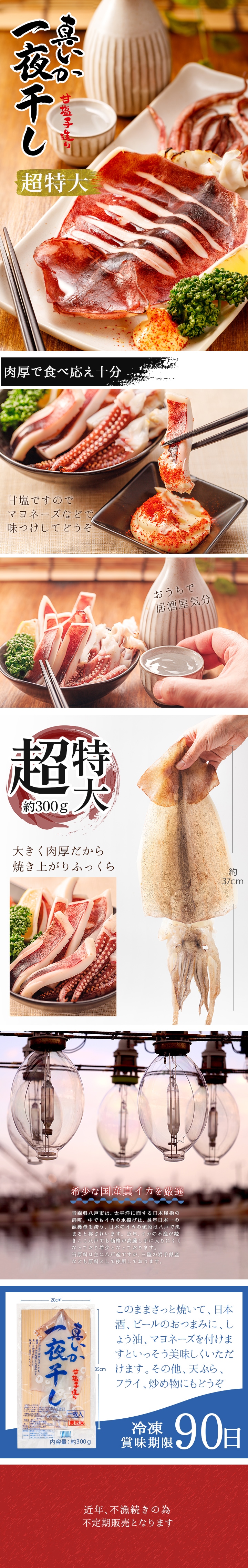 \超特大/ 八戸産 船凍するめいか 3杯入 (約1.2kg~1.3kg) イカ捌き方&塩辛レシピ付