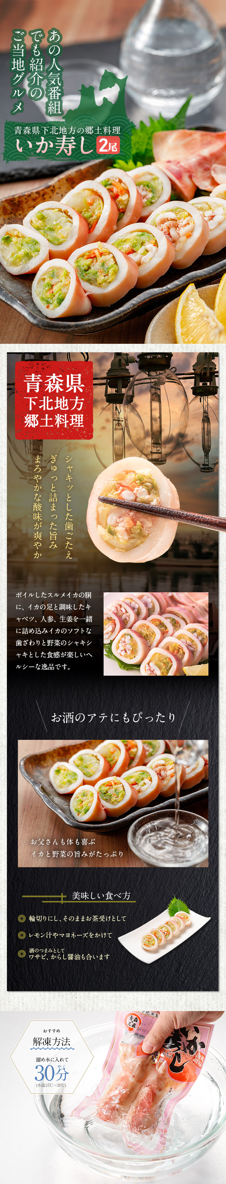 | 調理方法 | 加熱しないで、解凍後そのままお召し上がりください。マヨネーズ、わさび、からし醤油等を付けても美味しくいただけます。 |