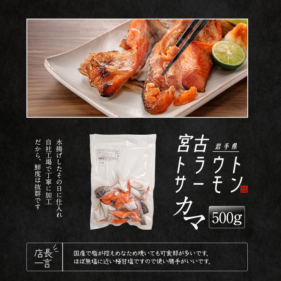 岩手県産 サーモンハラス 500g 無塩 業務用 宮古トラウトサーモン使用 自社加工 冷凍