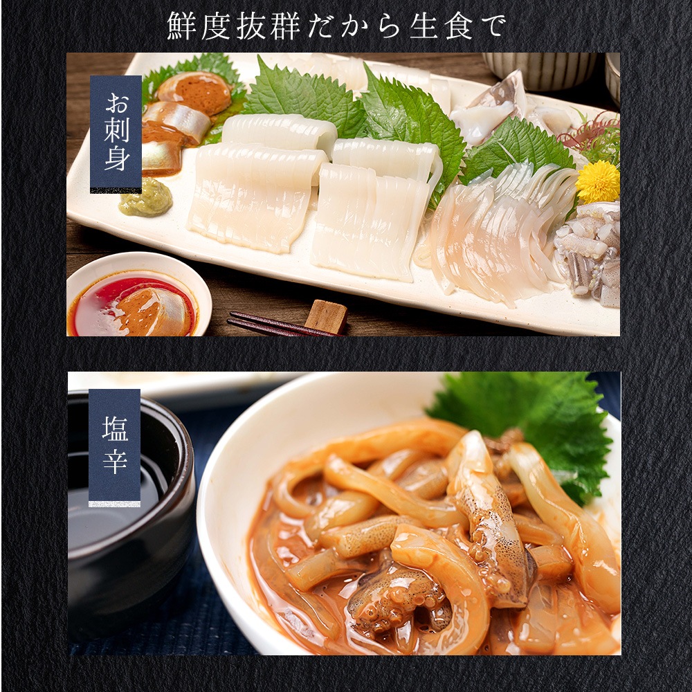 | 調理方法 | 自家製塩辛やお刺身など生食や肝を使ったお料理にどうぞ |