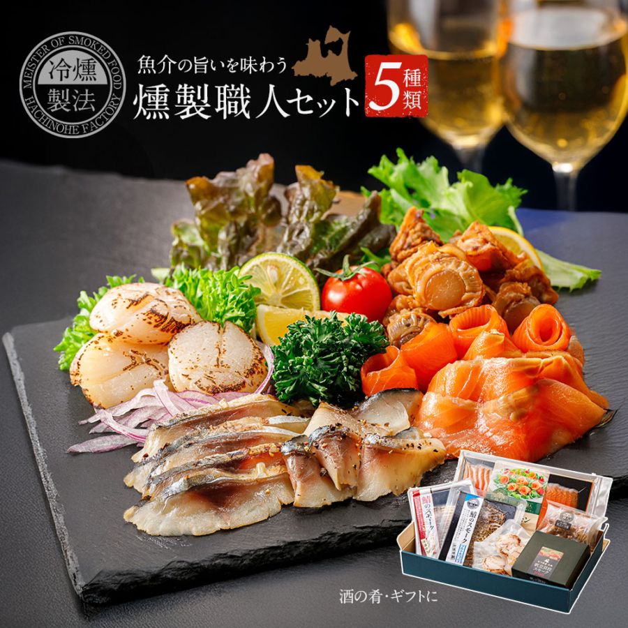 燻製職人セット 5種5品 魚介〈 送料無料 〉 国産 冷たい煙で燻す「冷燻製法」でしっとりレア食感